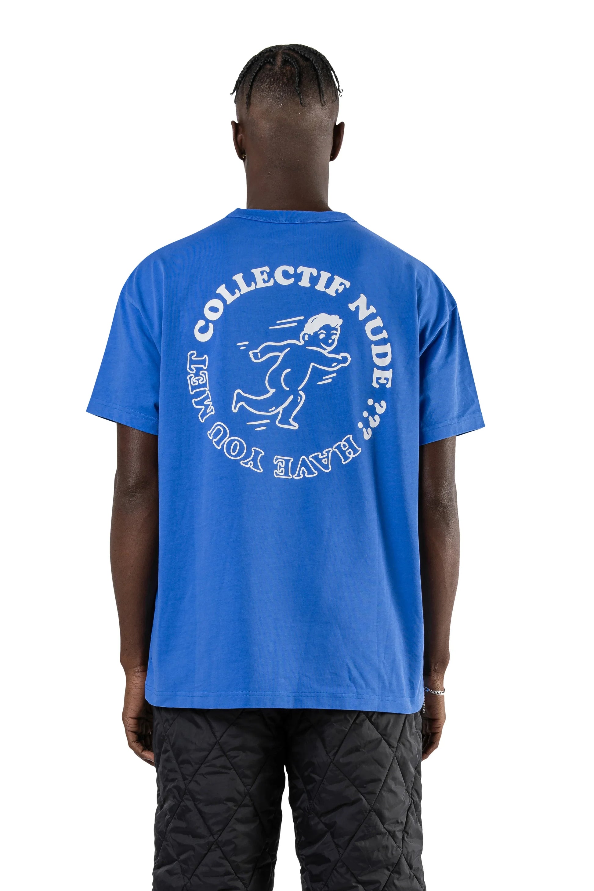Have you met the Nude Boy?? Now you have. Staple patch embroidered on the bottom left with a full back graphic printed on.